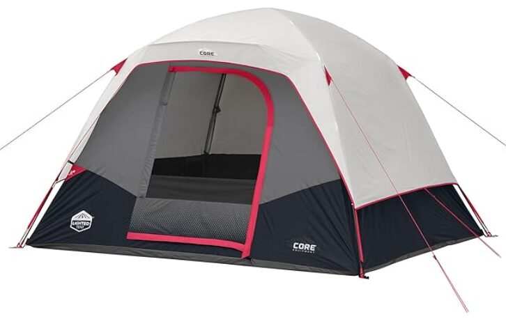 | CORE 6 Person Lighted Dome Tent | Varies (often fiberglass/aluminum) | Fair for moderate winds (taller profile) | Moderate | Spacious family camping |